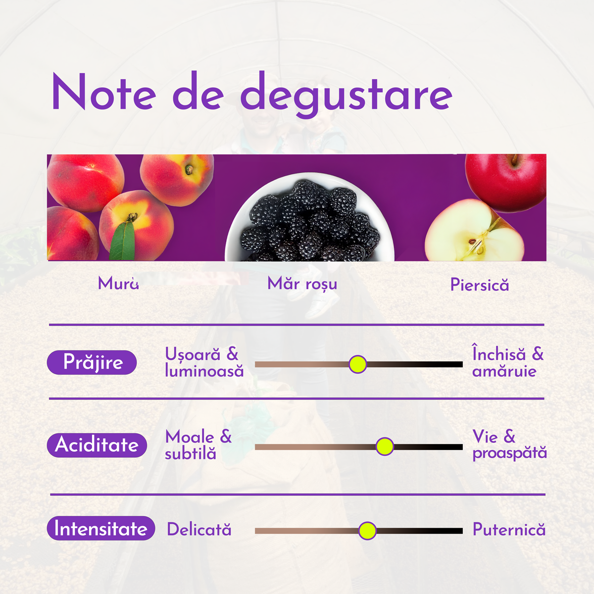 ✔ Note de degustare: mure, măr roșu, piersică