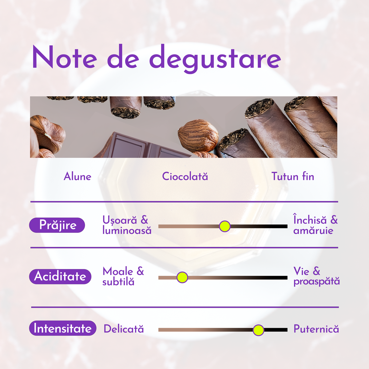 NOTE: alune, ciocolată, tutun fin